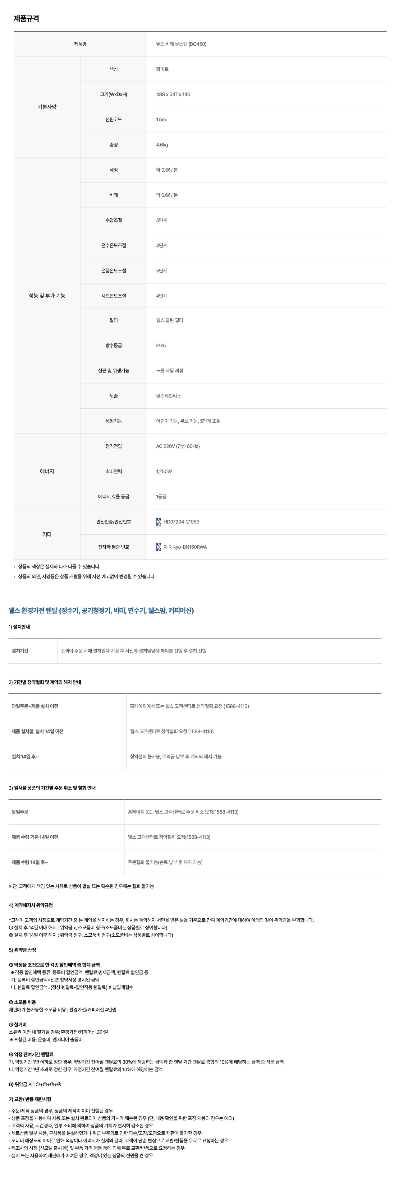 | A/S 기간 | 렌탈기간 내 |