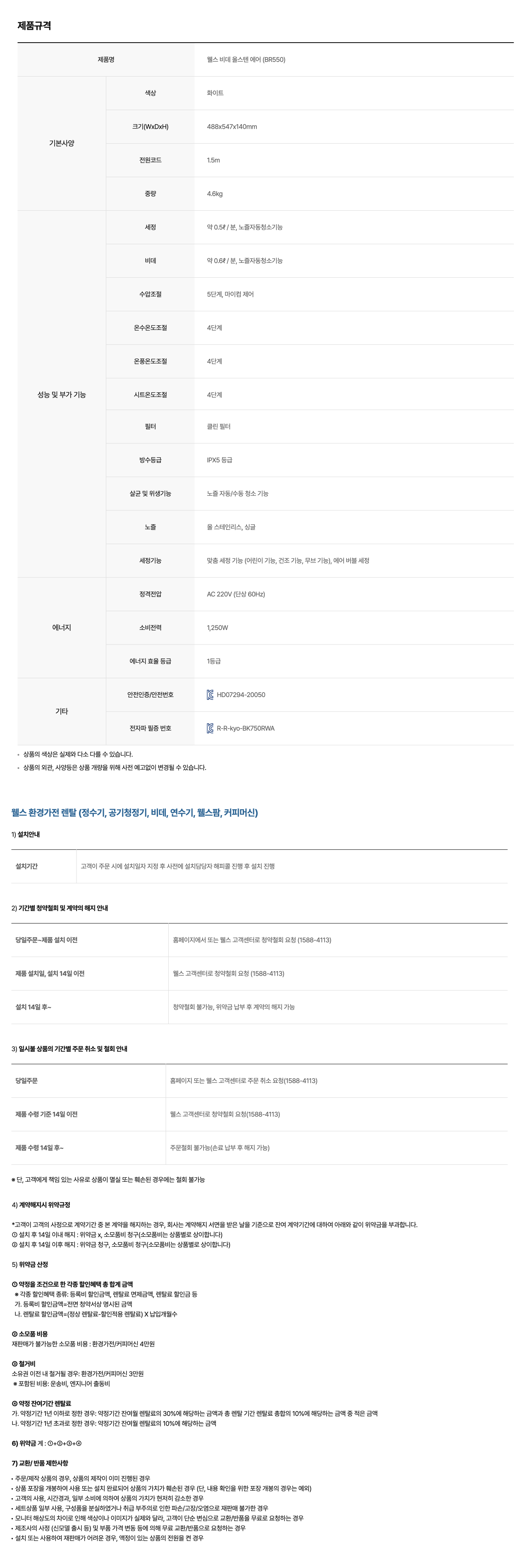 | A/S 기간 | 렌탈기간 내 |